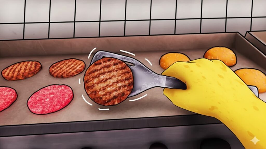 - 遊び方 キッチンでお肉を焼いてハンバーガーを作ったり、ポテトを揚げたりして、次々とやってくるお客さんに料理を提供して売上を稼ぎます。稼いだ資金でレストランの設備を豪華にしていき、合間には車に乗って街を探索し、隠されたシークレットを探すこともできます。